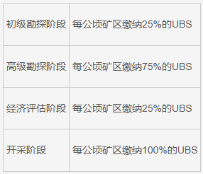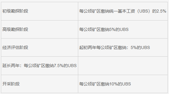 所有矿业权持有者都应按照以下标准缴纳矿权维护费(截至2025年,UBS为470美元):
