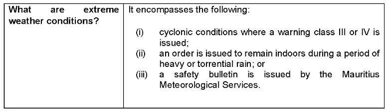 - Where a worker is required to attend the employer’s premises or any other place where is has been assigned duty during extreme weather conditions, he shall receive, in addition to his normal remuneration, an allowance equal to 3 times the basic hourly rate for each hour of work performed and an adequate free meal.
