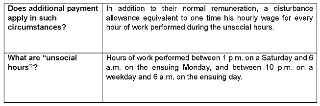 They may be required to perform work during unsocial hours in situations of emergency, or where the working hours of the worker correspond to the working hours in the market country served.