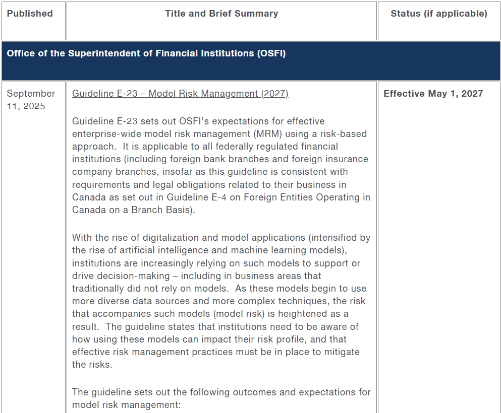 The Federal Financial Institutions Legislative and Regulatory Reporter (the Reporter) provides a monthly summary of Canadian federal legislative and regulatory developments of relevance to federally regulated financial institutions. It does not address Canadian provincial financial services legislative and regulatory developments. In addition, purely technical and administrative changes (such as changes to reporting forms) are not covered.